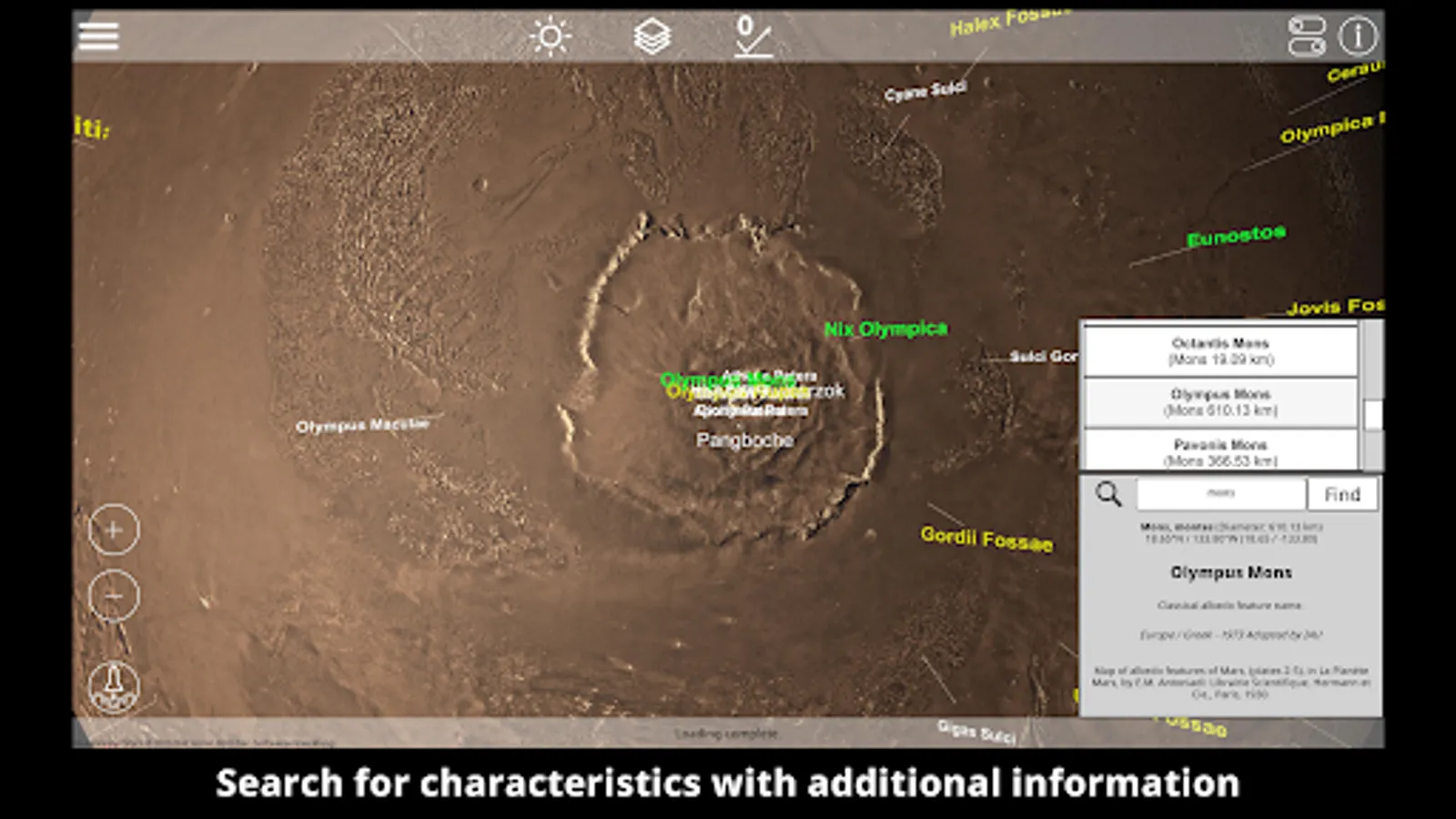 GlobeViewer Mars is an interactive and three-dimensional globe of the entire surface of Mars. The 3D global map shows all official designations for various surface features. If you are interested in a specific region, an even higher resolution local 3D map view can be loaded for a closer look at the craters, mountains and other formations. In addition, a mission log of all Mars missions since 1960 has been included.