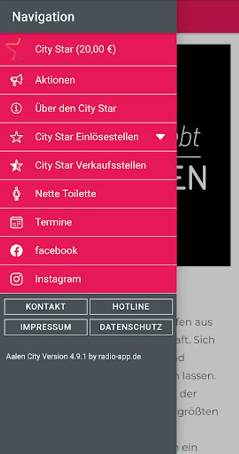 With the new Aalen City app, you won't miss any more appointments. Be informed about new promotions via push notifications and quickly find the right shop, including all City Star partner shops, on the go. Simply enter your City Star card number and pay by simply showing the app. In addition, this always shows the current balance.