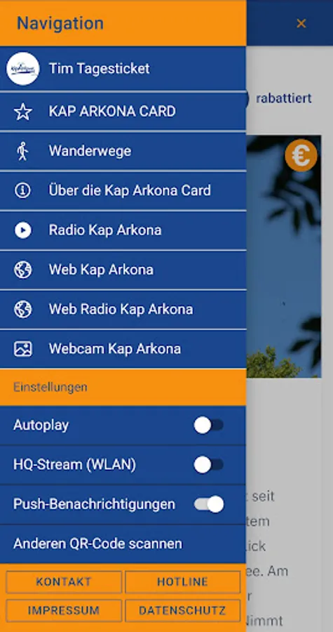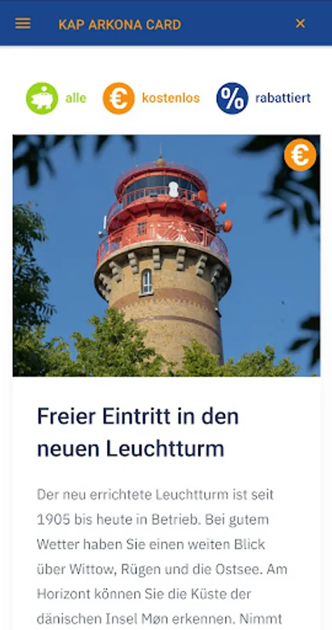 This app is aimed exclusively at visitors to Cape Arkona. When you start the app, scan an individual QR code, which you can purchase as a day ticket in the tourist information at the large car park in Putgarten or in numerous hotels and accommodations. Further information is also available at www.kap-arkona-card.de.