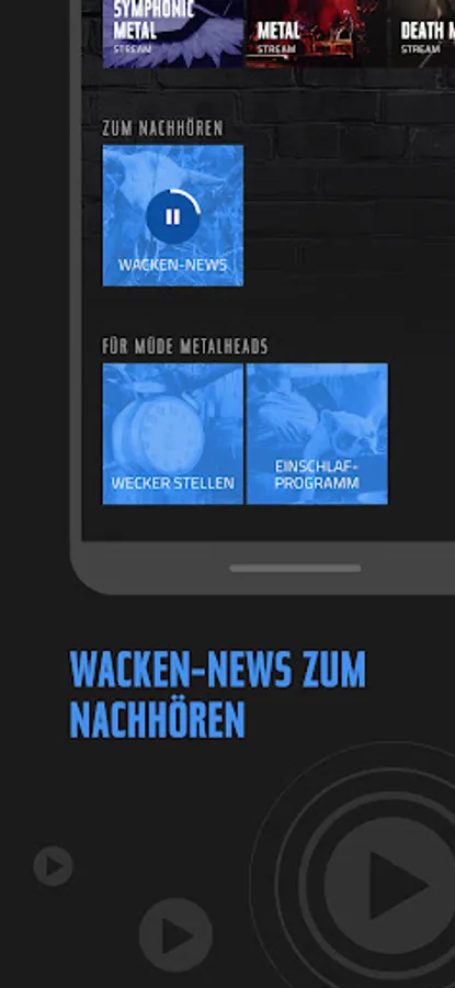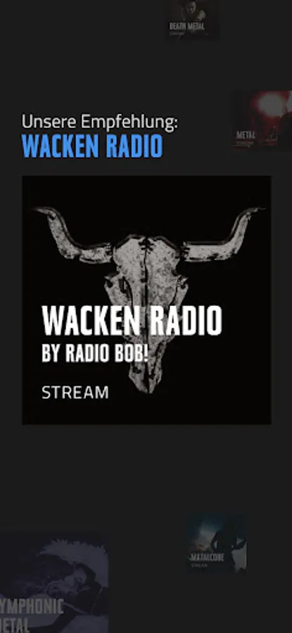 In the Wacken Radio App you get the sound of the Wacken Open Air - and the huge variety of metals. In addition to the Wacken Radio live stream, you will find streams in different flavors such as metal, death metal, symphonic metal or metalcore.