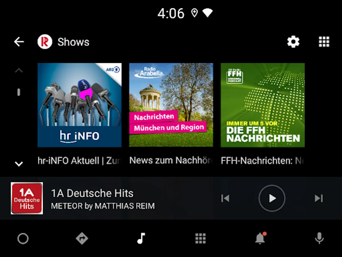 Experience real diversity with stations such as Antenne Bayern, HIT RADIO FFH, 1live, Radio 7, Teddy, Radio SAW, Antenne Niedersachsen, SWR3, Radio Regenbogen, Deutschlandfunk, Deluxe, N-JOY, delta radio, Radio Hamburg, 104.6 RTL Berlin, radio ffn, 105.5 NDR2, JAM FM, BB Radio, planet radio, Rockland Radio, Fritz, MDR JUMP, all public broadcasters from NDR, MDR, HR, WDR, SWR, SR and Deutschlandradio, your very own local radio stations and many web radio stations -Only offers from DetectorFM to Ballermann Radio.