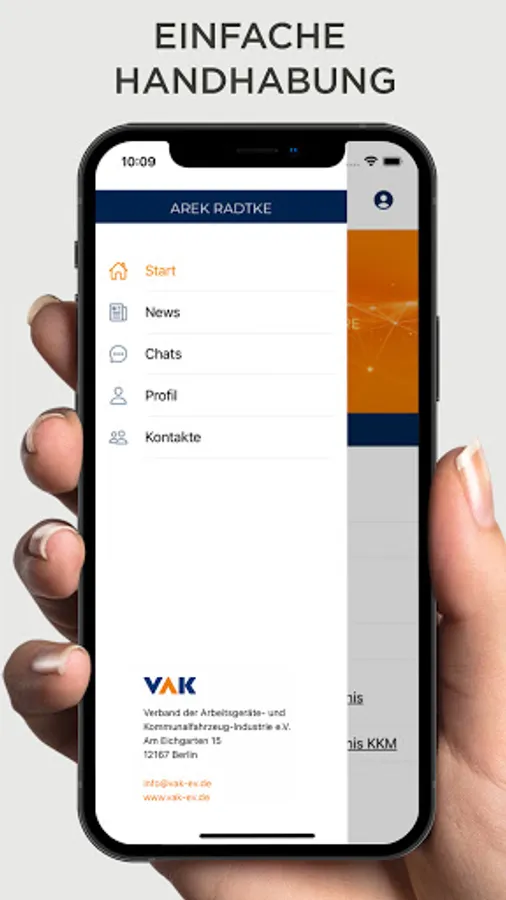 In addition to classic personal networking opportunities, the VAK e.V. association also wanted to create a platform on which people could exchange ideas quickly and directly. In this way, we guarantee an even higher level of togetherness and loyalty to the association network. In the growing digitalization in particular, a member portal is an extended opportunity to exchange ideas with one another. With the consent to use the app and the release of the contact details (each member can decide independently which data is released and to whom), a digital path can be added to the previous personal exchange. This primarily means that former acquaintances can network via a new messenger service and information channel, but also that new members can integrate into the network more quickly and also make relevant contacts earlier. This creates a personal VAK address book for each individual user.