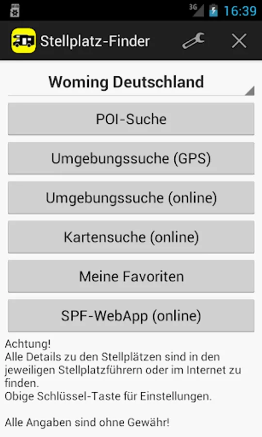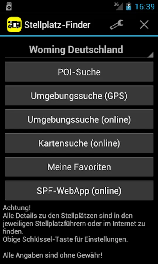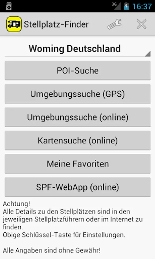 A small tool to find a parking space or RV camping, with interface for navigation and Google Maps to Google. Pitch Finder reads the POI files of parking guides and camping sites and evaluates them. Proximity search now! A small introduction can be found at www.stellplatzfinder.de.vu that forum for the app and database on www.stellplatzfuehrer.de.