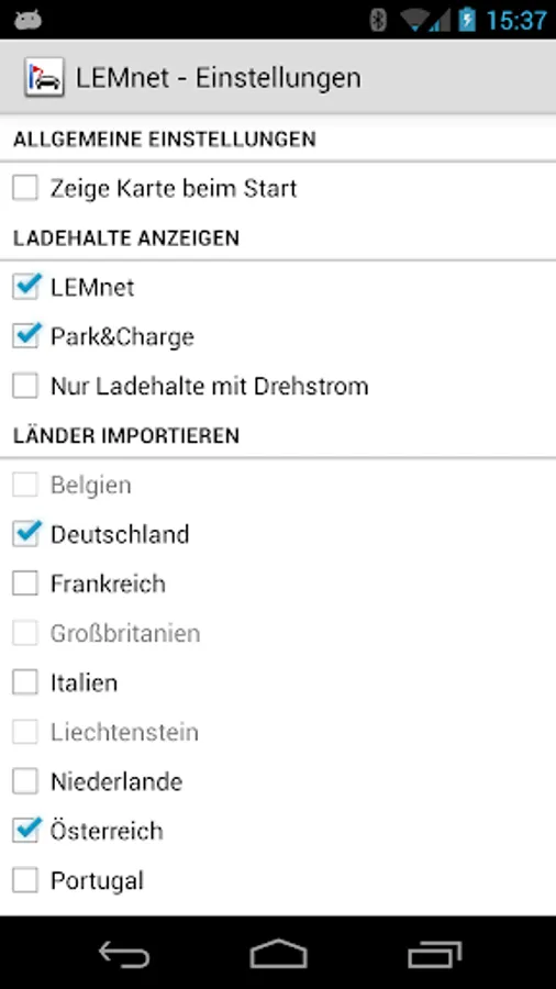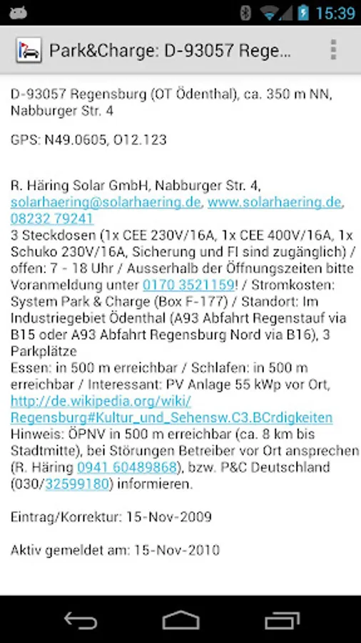 List of more than 27.000 charging stations for electric vehicles in Europe (import from www.lemnet.org).
