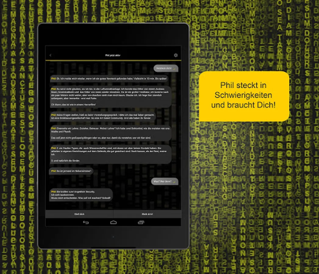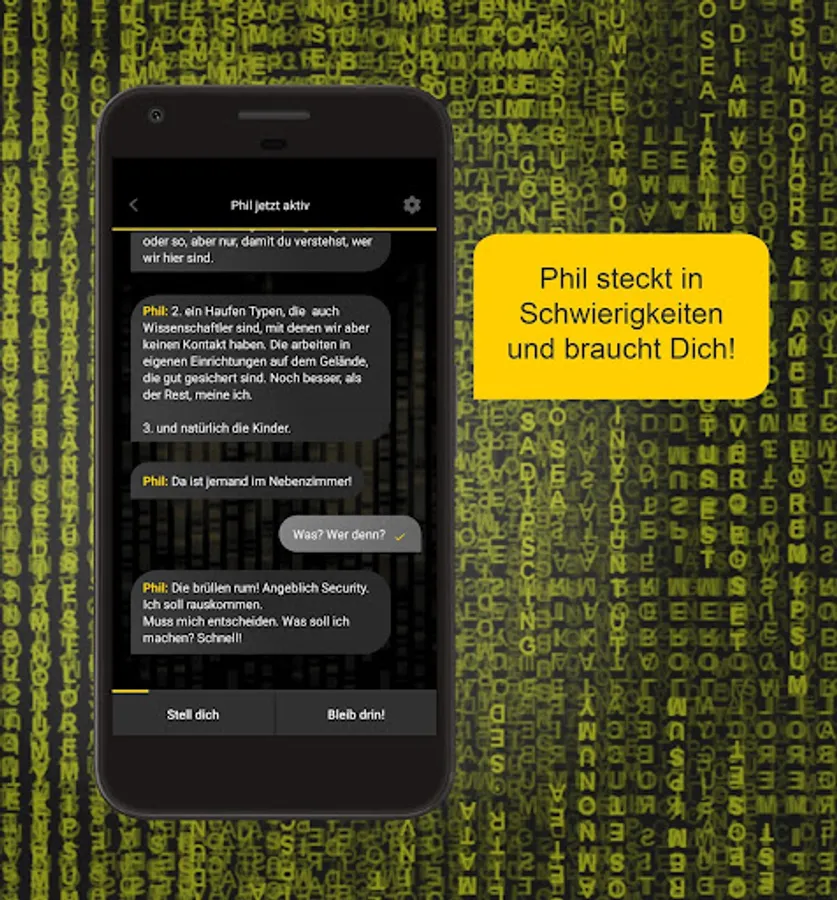 Phil urgently needs your help! Can you make it to lead Phil through this interactive text adventure game? Best-selling author Marc Elsberg creates a German Mystery game full of exciting twists and dark secrets.