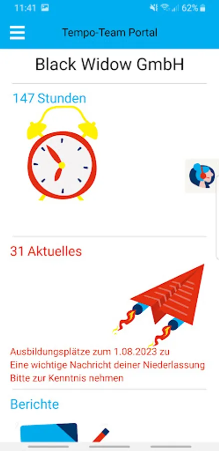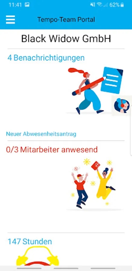 In the Tempo-Team portal app, the electronically recorded time data is displayed transparently and clearly in real time.