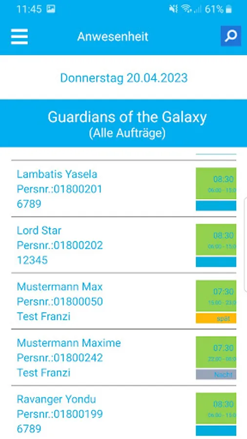 In a protected environment, you can see the current presence and absence status and a precise overview around the clock