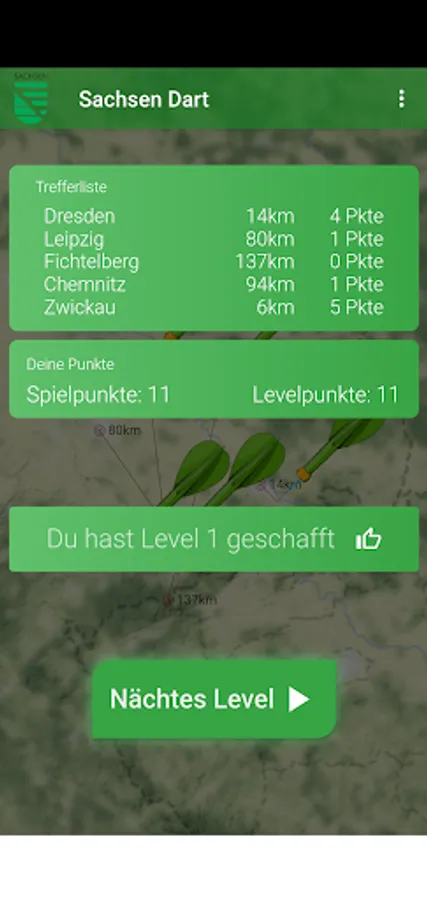 Where are cities, mountains, landmarks and interessting places in the Free State ofSaxony. Aim exactly to throw the dart at the target. The closer you get, the more points you get when playing against a friend. With this game you also learn german geographics of the Free State Saxony in Germany.