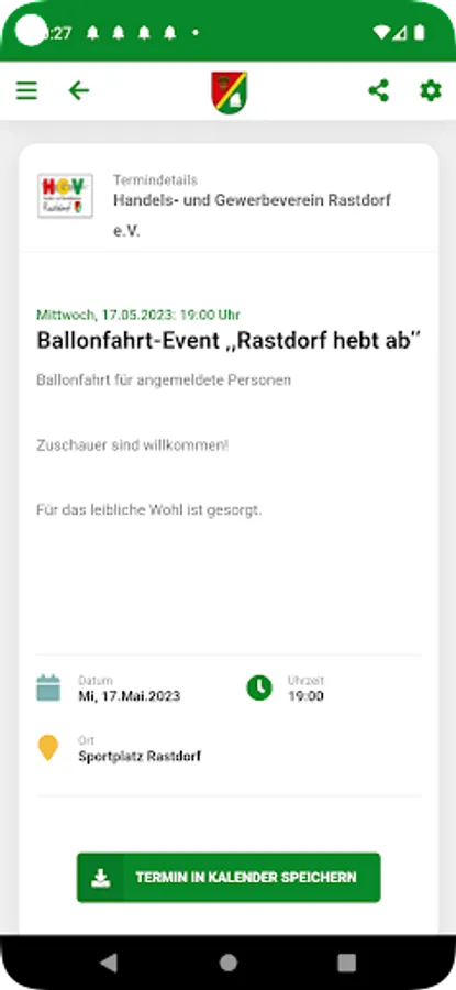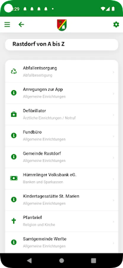 In addition, the Rastdorf app offers current reports, information on facilities and clubs, emergency service boards and an overview of contact persons for clubs and much more. You always have all relevant information at hand and stay up to date.
