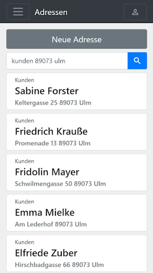After starting the app take you directly to Quick Find. Enter known key data of the requested address in the input field and start the search. In no time you get a concise list of all hits.