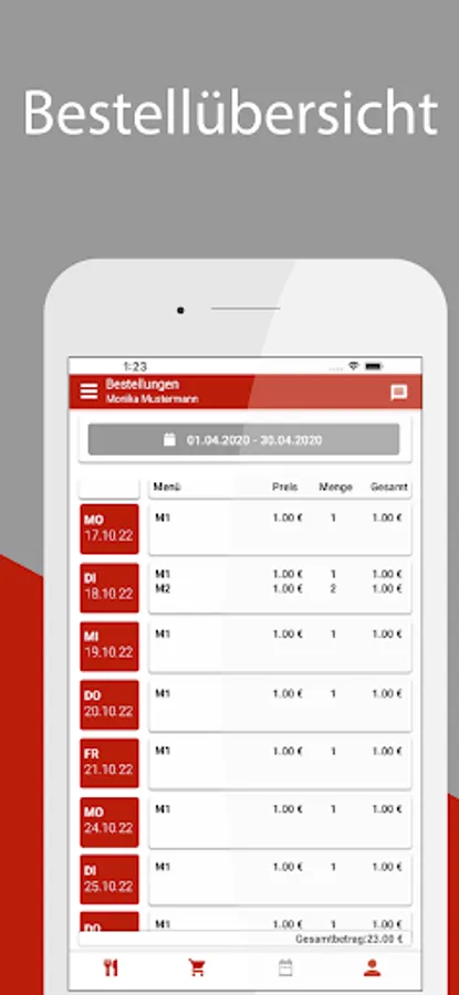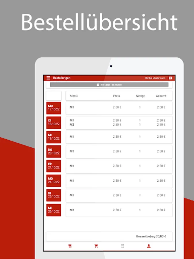 The menu can be displayed in a daily or weekly view and can be adjusted to individual needs in the settings.