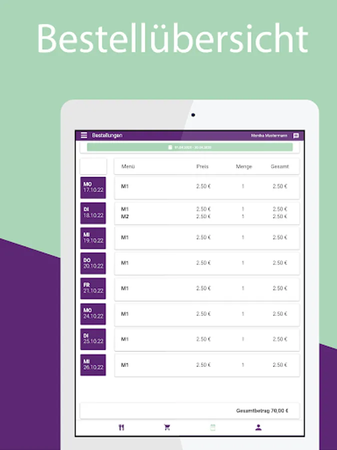 Should it no longer be present, if lunches have already been pre-ordered, the insight into the menu and orders is also available offline at any time.