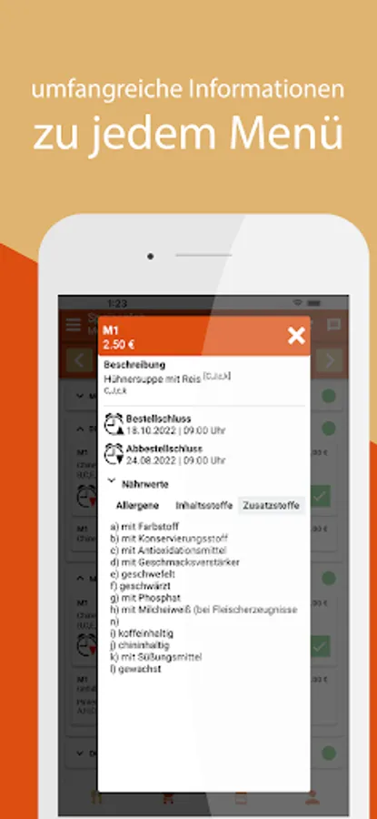 In the present ordering system you can order online from our food offer, which is stored in the present menu. You can choose one of 2 dishes a day. The order process must be completed by Friday 9:00 a.m. for the coming week. You can cancel your order up to 7 a.m. on the day of the meal. If we have not received an order, but your child still wants to eat, this is still possible on site. For this we would charge an additional cost of € 1.00 / meal.
