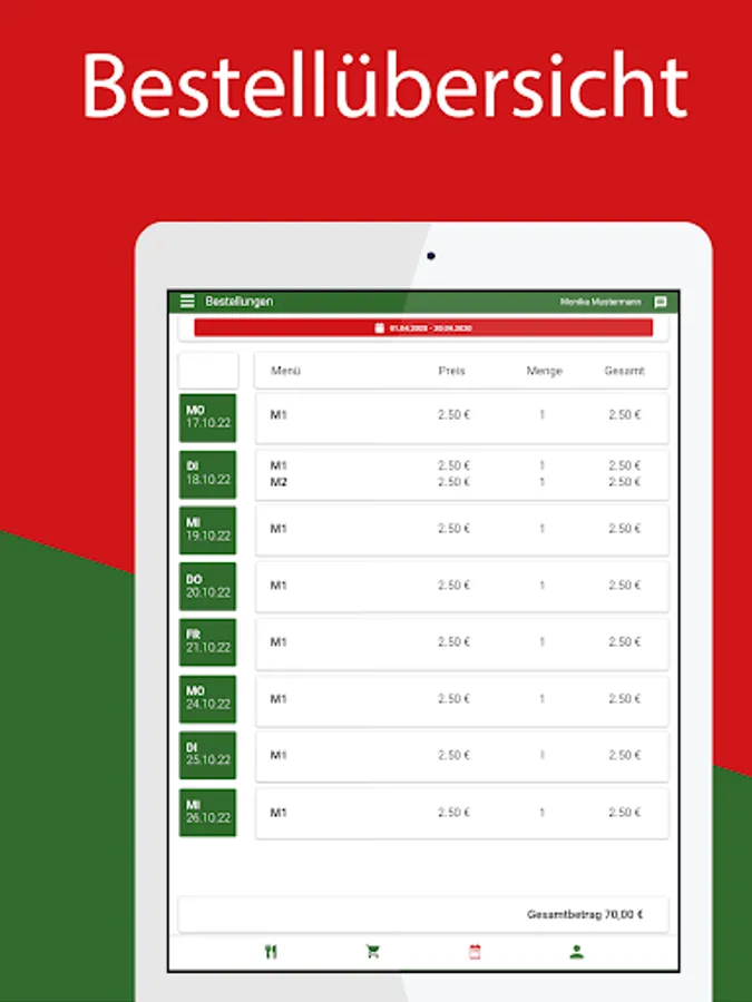 With the Dortmund menu service app, logged in and registered customers can view or edit their daily menu and highlighted their current menu orders.