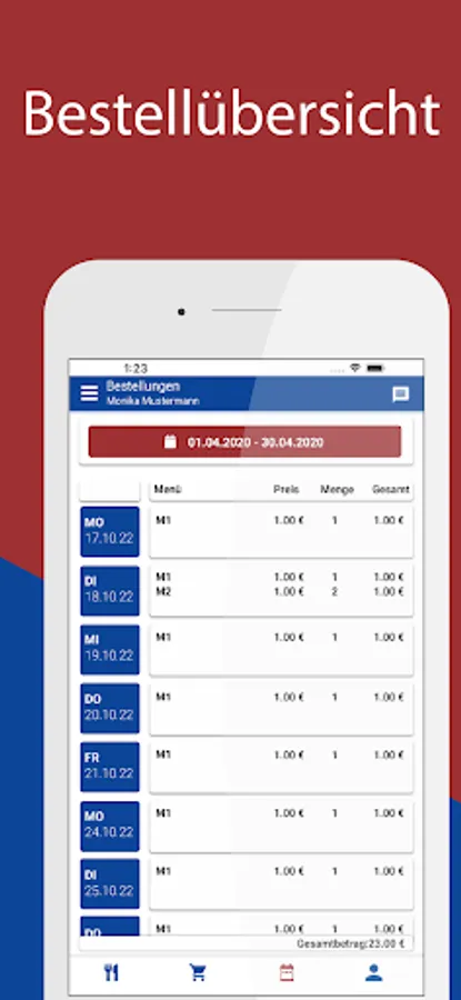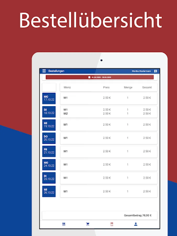 Meal participants registered with the food service of Lebenshilfe Oschatz see their daily menu and their current food orders highlighted in color. The menus in the menu can be displayed in a weekly view.