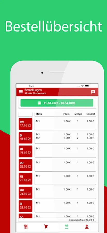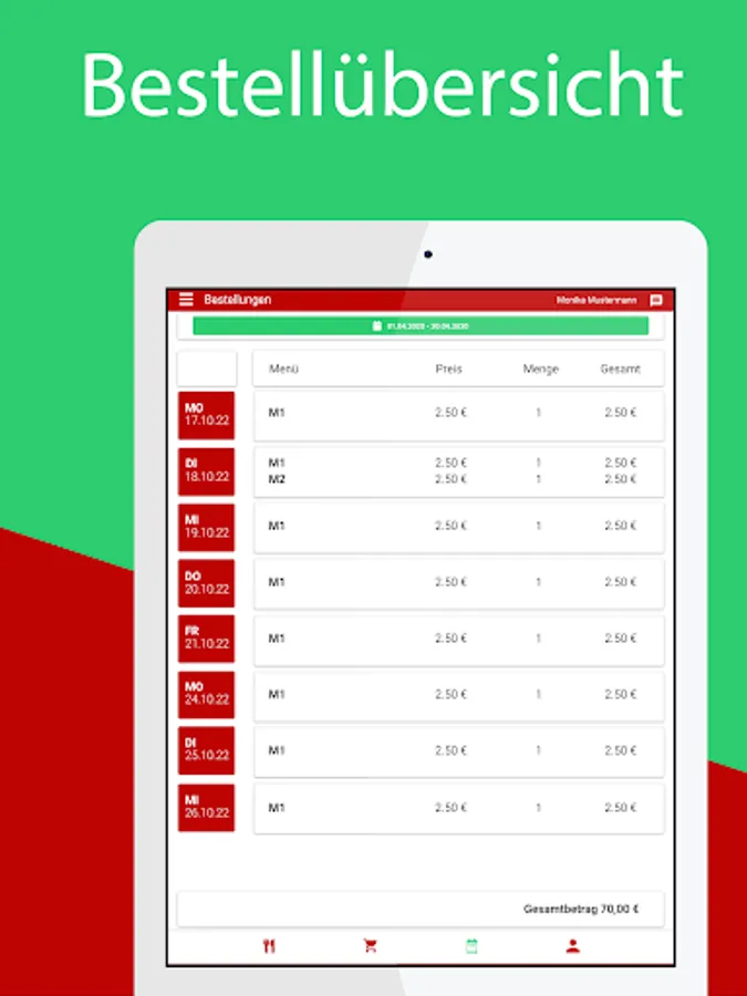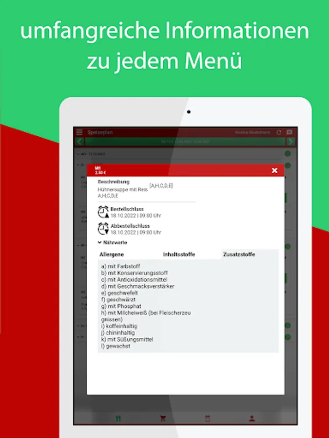 Meal participants registered with the school service of Schulkueche Werbig GmbH see their daily menu and their current meal orders highlighted in color. The menus can be displayed in the menu in a weekly view.