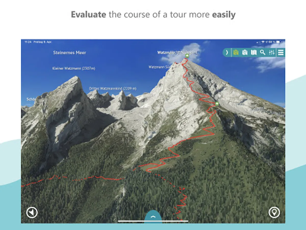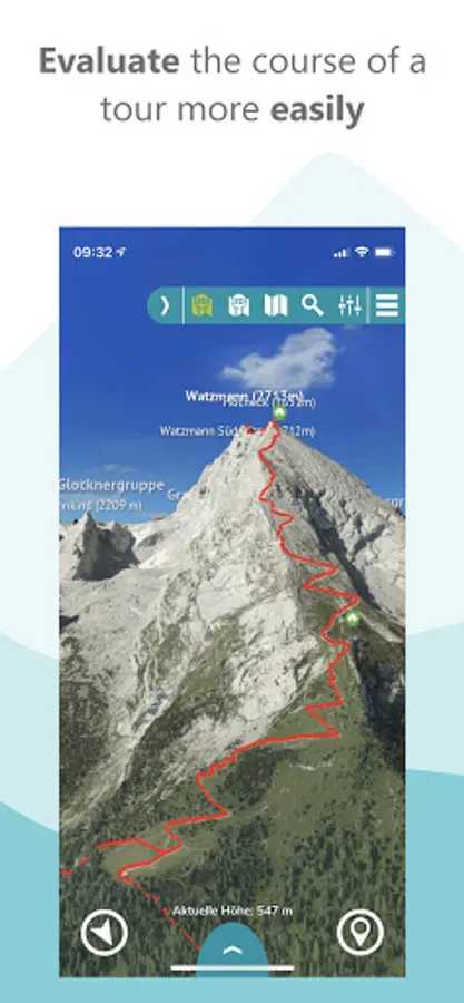 The app offers an unprecedented level of security. In the photo-realistic 3D map you can read the exposure and condition of the terrain and identify danger spots. In bad weather, in fog or at night, you can find your way around as the map depicts the real terrain. Another safety aspect: you can load the maps onto your smartphone for offline use.