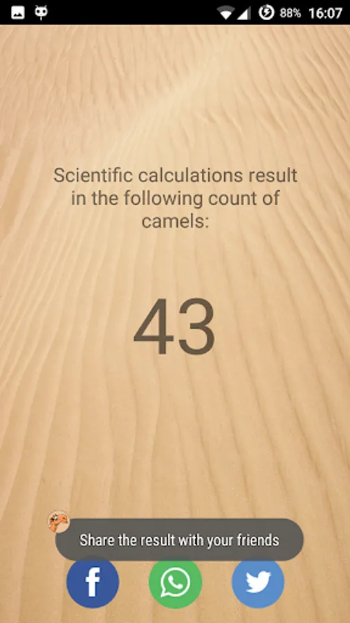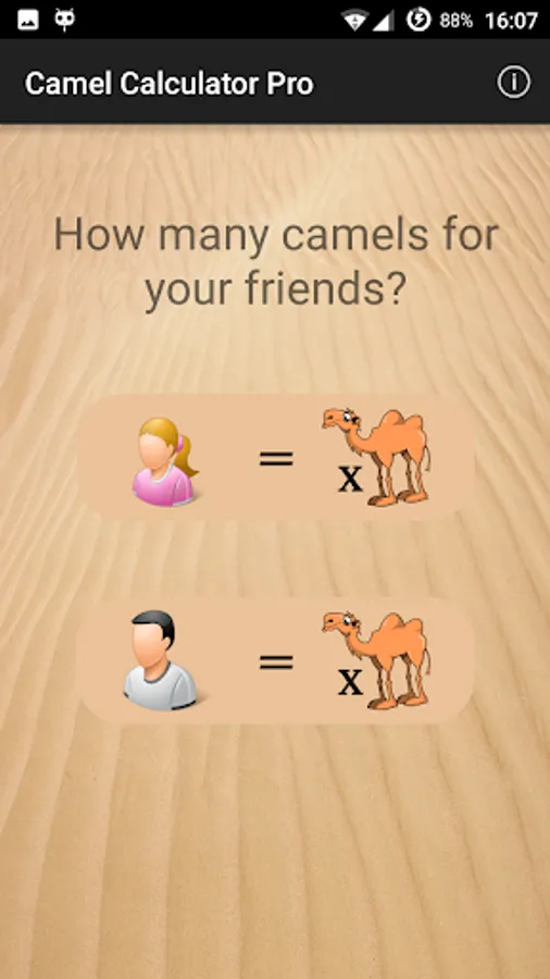 With this app you can calculate how many camels you would get for your boy- or girlfriend.