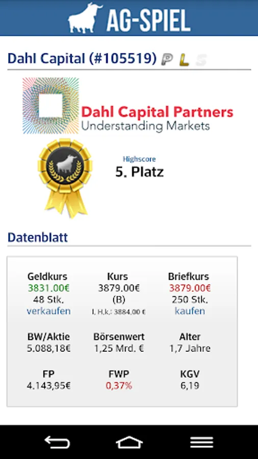 The stock market game with the fully self-sufficient stock exchange. Everything in the game is based on actions of the player, there is no influence by chance factors or the game itself - in this form unique!
