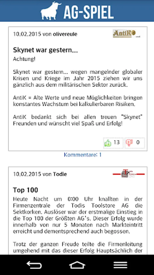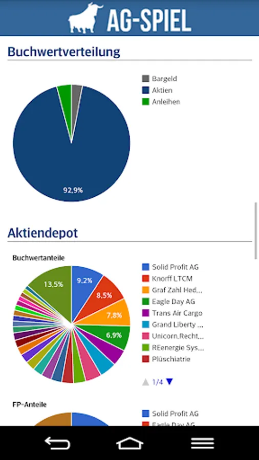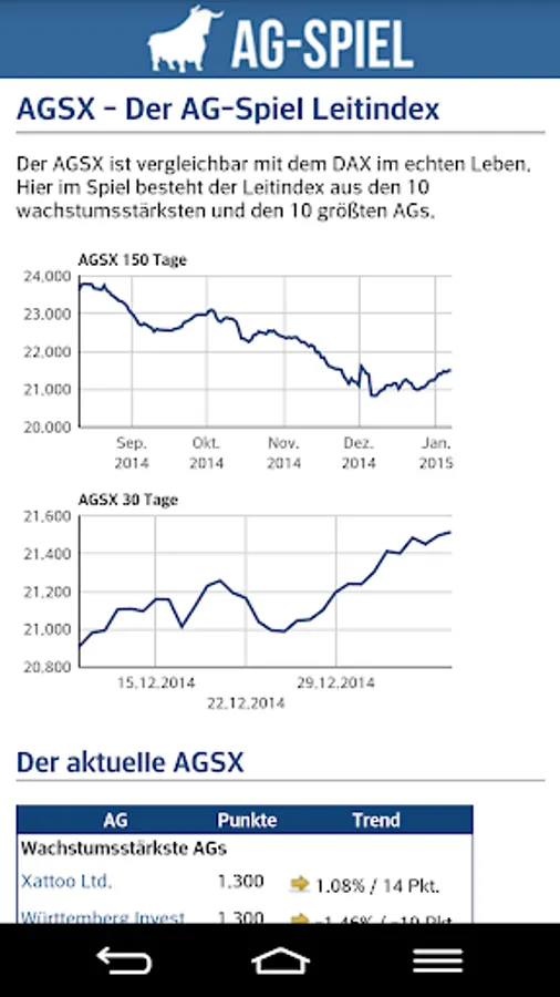AG-Spiel.de is a free browser game in which you base your own limited company and act with shares (AGs other players) on a virtual stock exchange. Other investments such as bonds and certificates exist as well.