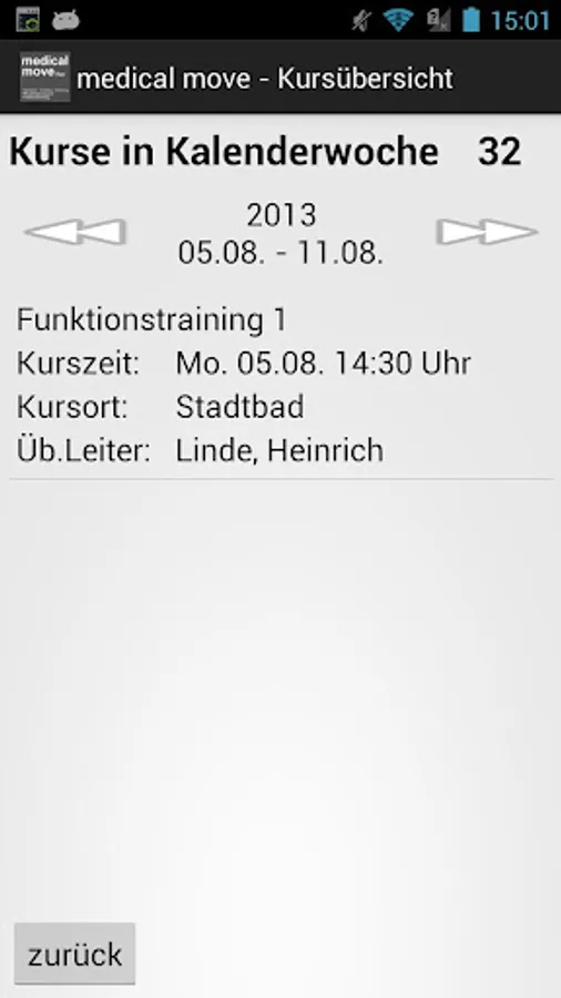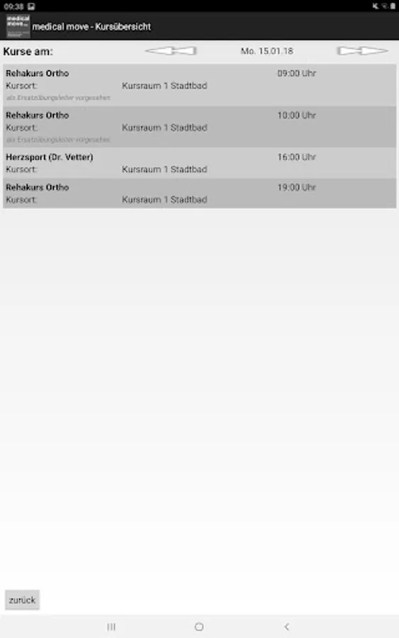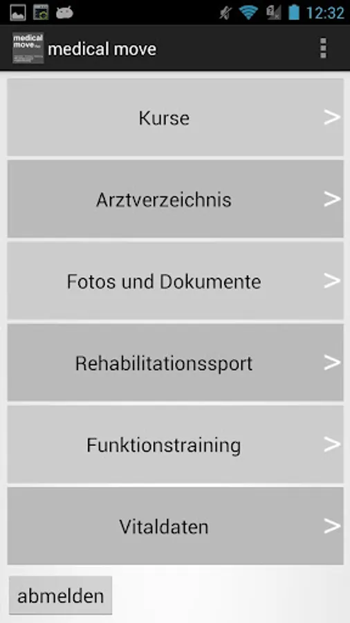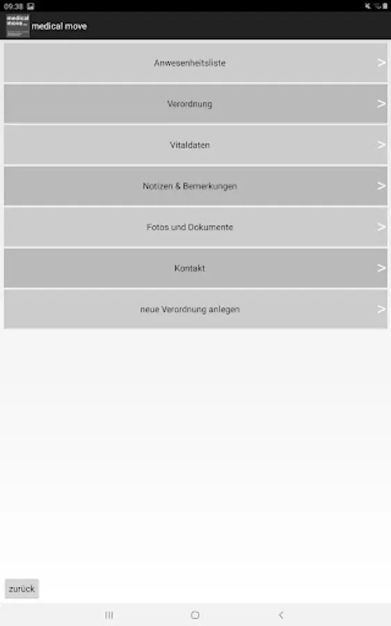 All functionalities of the online based window software "medical move" are included in the smartphone as an app and are assigned according to special rights and the respective user, such as athletes (as well as patients), trainers or club managers.