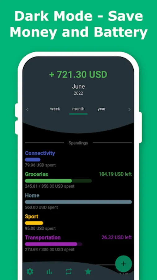Monthly is the budget planner that gives you the overview of your finances both at home and on the go. At a glance, you can see your monthly balance, you income, your expenses, and how much of your budgets you have already spent. This type of expense manager makes it easy for you to save money so that you can spend it on things that make you happy.