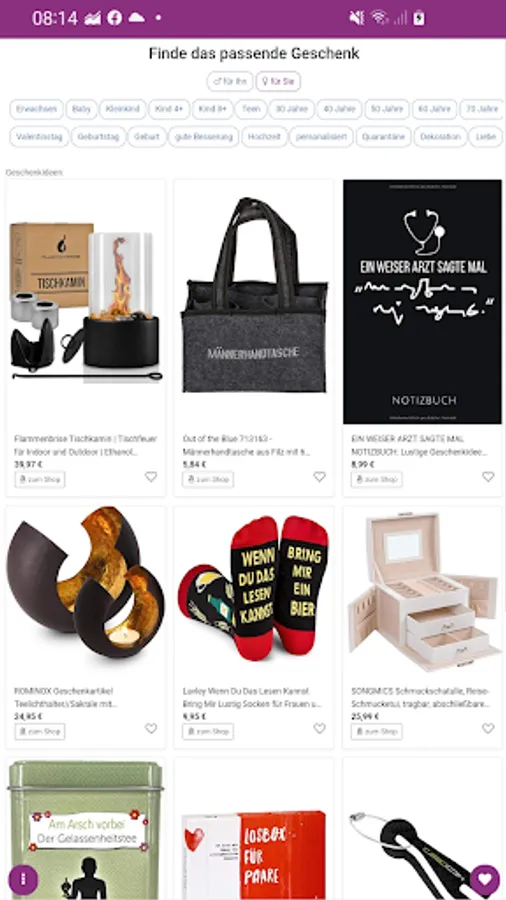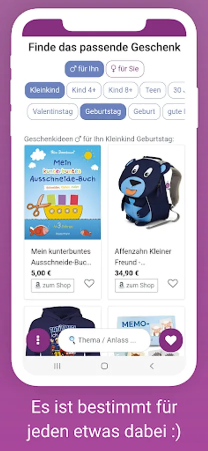Use the provided filters to select your target person's characteristics, such as age and gender, and the reason for the gift.