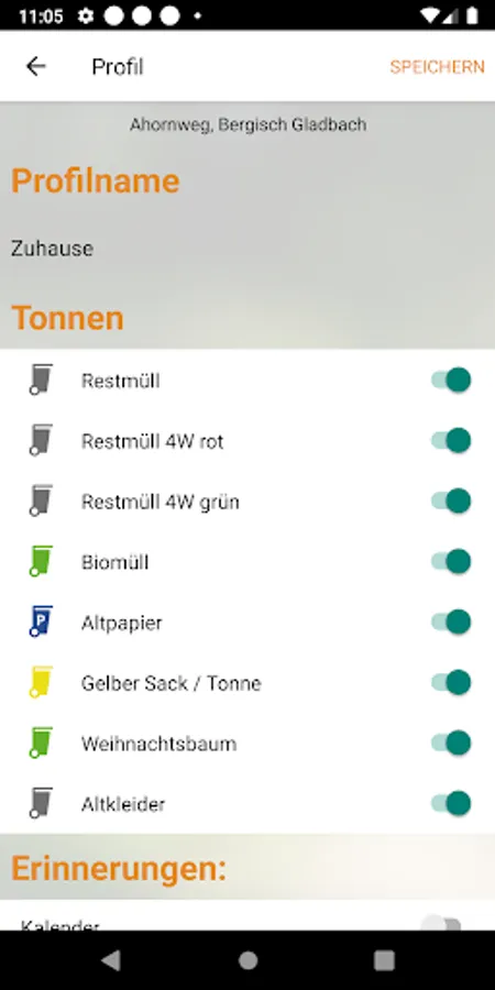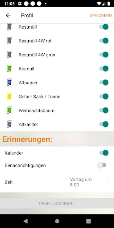 When setting the profile, it is also determined whether the smartphone reminds of the upcoming collection dates via the local notification and / or via the calendar. Unscheduled appointment changes are taken into account in both cases.