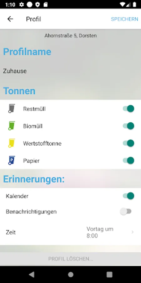 When setting the profile, it is also determined whether the smartphone reminds of the upcoming collection dates via the local notification and / or via the calendar. Unscheduled appointment changes are taken into account in both cases.