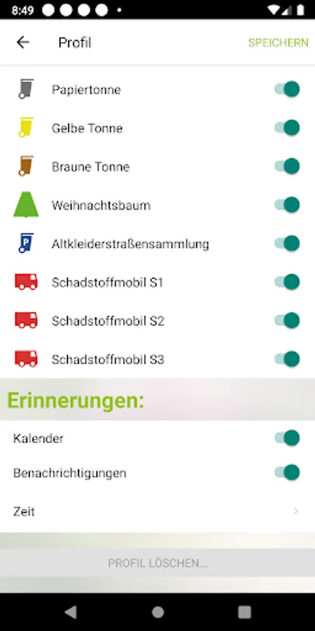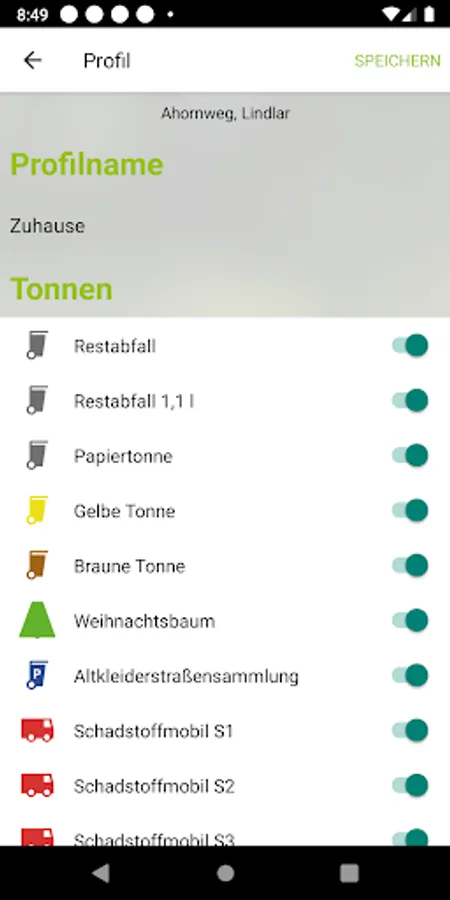 In the profile, select your personal location. You can use a slider to set the pickup date for a specific recyclable material.