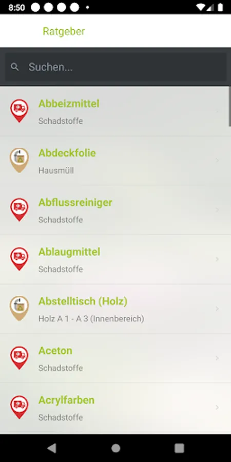 • a waste ABC, which allows you to find out about the disposal of specific recyclables. In addition, reference is made to the correct disposal location.