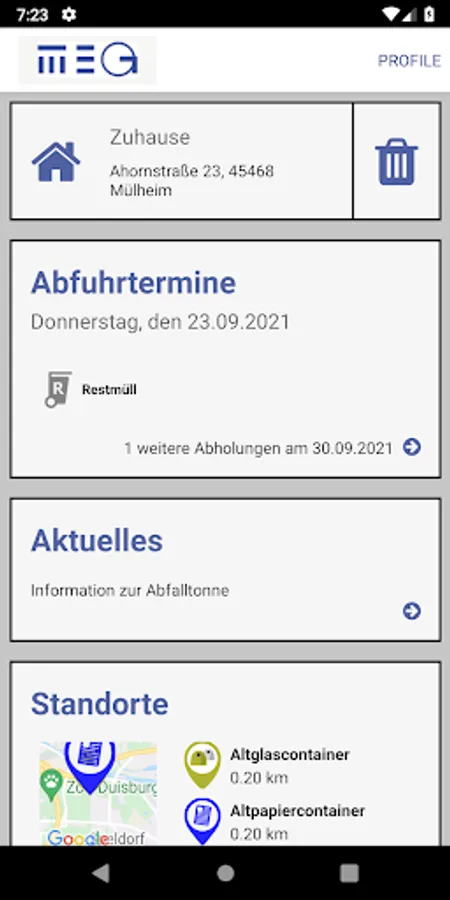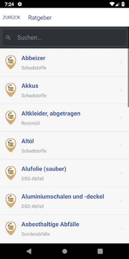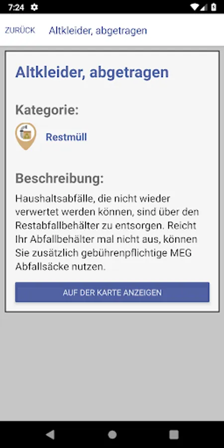 Which recyclables can be disposed of when, where and how? The abfallapp enables quick access to individual collection dates. You will be reminded of all appointments for a maximum of five locations if previously set. The personal locations are selected in the profile. A slider is used to set which collection dates for a certain recyclable material should be informed about.