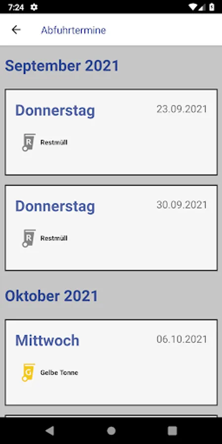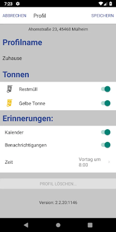 When setting the profile, it is also determined whether the smartphone reminds of the upcoming collection dates via the local notification and / or via the calendar. Unscheduled changes of dates will be taken into account in both cases.