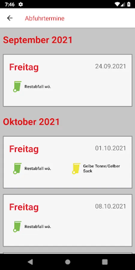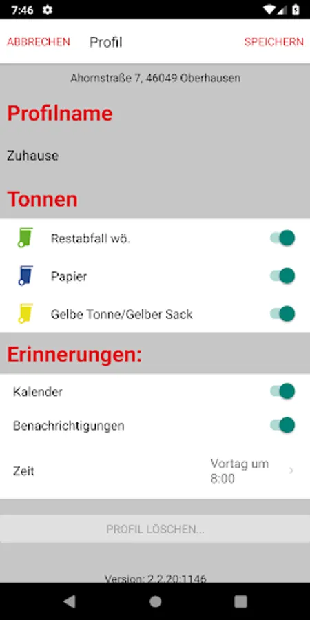 When setting the profile, it is also determined whether the smartphone will remind you of upcoming collection dates via the local notification and/or via the calendar. Unscheduled changes to dates will be taken into account in both cases.