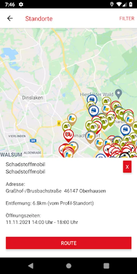 • an overview of all disposal locations with opening times and a routing function