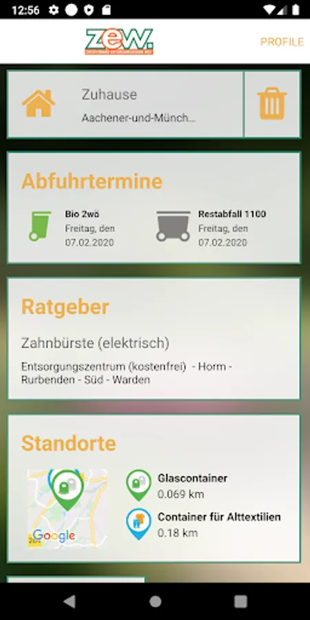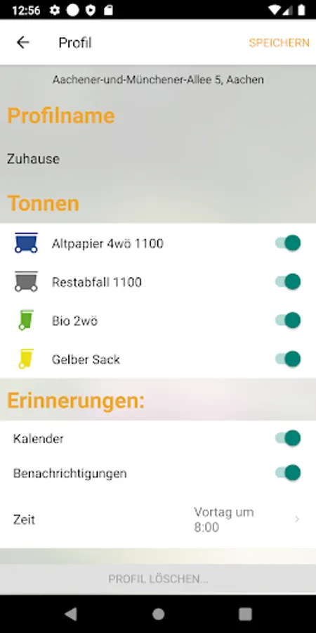 When setting the profile, it is also determined whether the smartphone reminds of the upcoming collection dates via the local notification and / or via the calendar. Unscheduled appointment changes are taken into account in both cases.