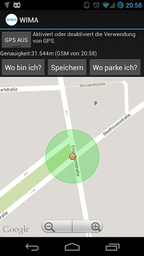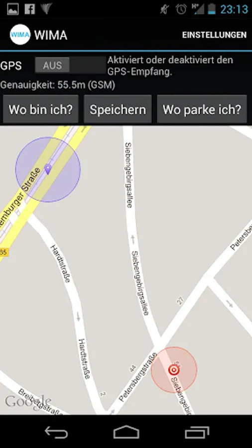 3) As on Google maps, the accuracy of your location will be displayed as a colored circle around the recorgnized position. So you can evaluate whether the psoition is useful for you or not. Furthermore this can be useful to find your parking position, because the accurarcy is saved together with your parking position!