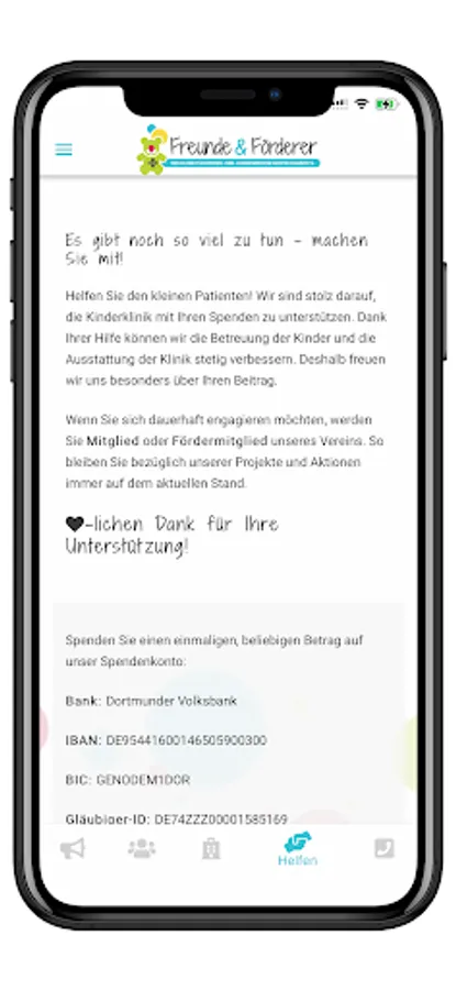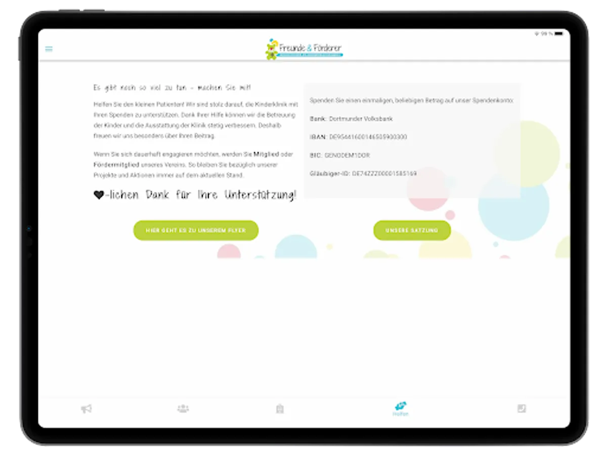 With this app, the association offers the opportunity to follow the current developments, to find out about the clinic and the association and to contact the association.
