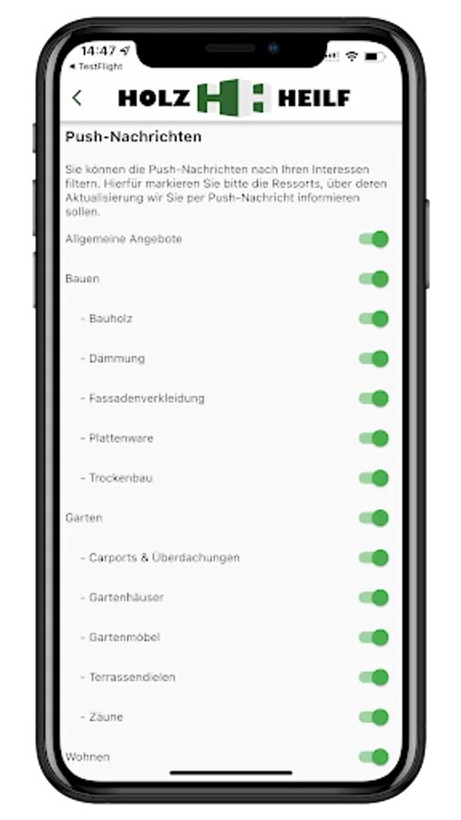 With our app you receive current offers directly on your mobile phone. In the settings you can mark the areas that are of particular interest to you. You will then be informed via push notification of new and sometimes limited availability items for each new offer in your desired area.