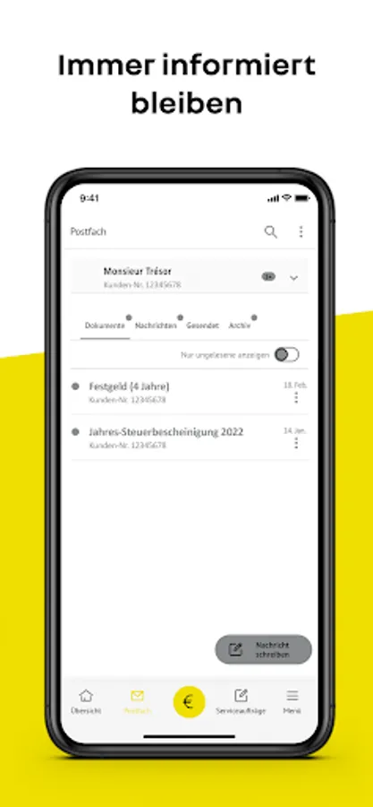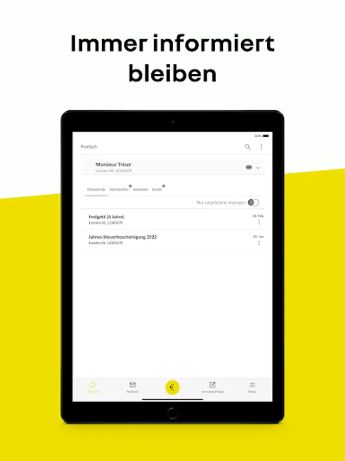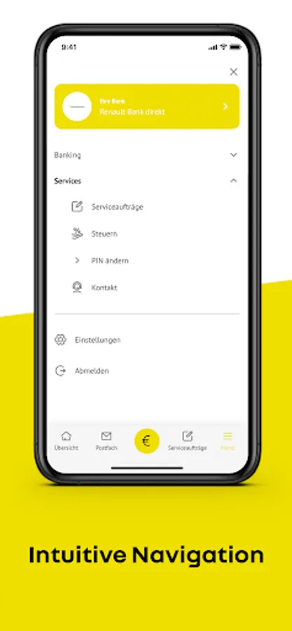 With the Renault Bank direct banking app, you can manage your accounts with one hand and keep an eye on account balances, new inboxes and exemption orders on the go - no matter when, no matter where. Send your service orders, such as changing the reference account, very flexibly to your bank.
