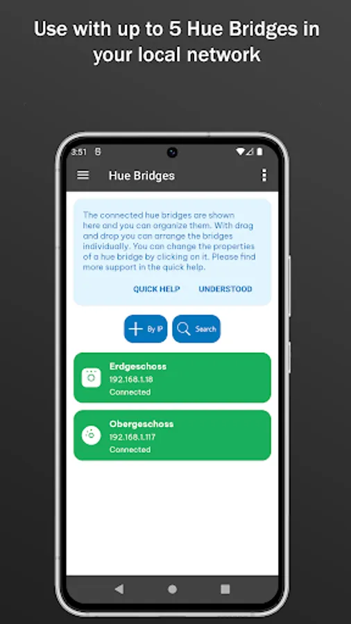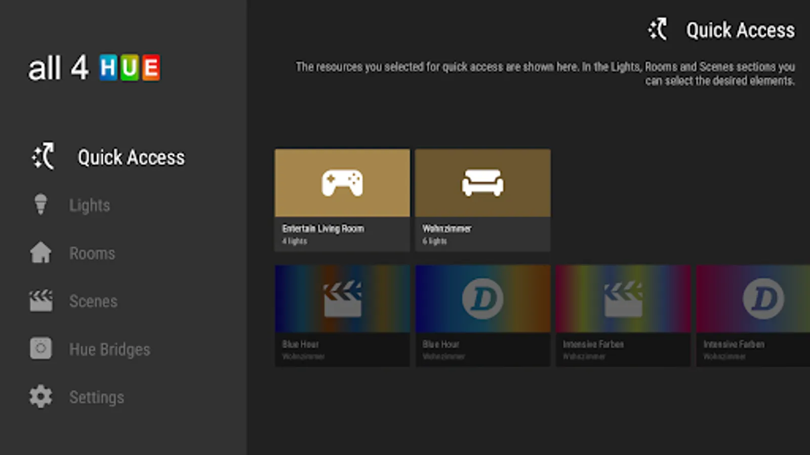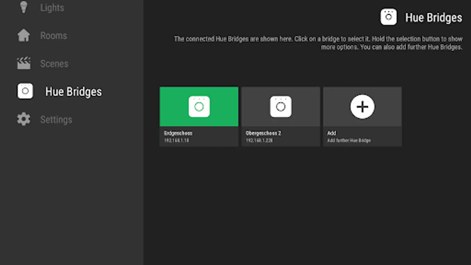 - The access to up to 5 hue bridges with this app is possible (after in-app upgrade).