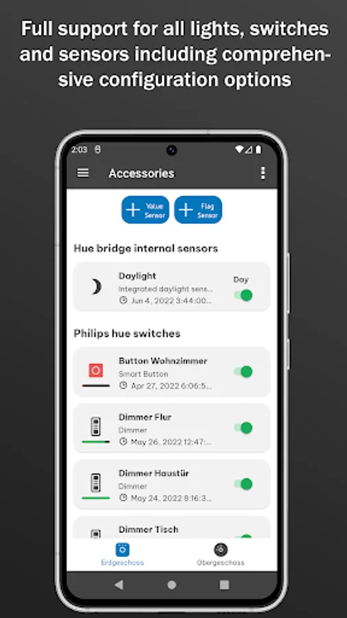 - This app supports hue tap, dimmer, presence sensor, ambient light sensor and temperature sensor.