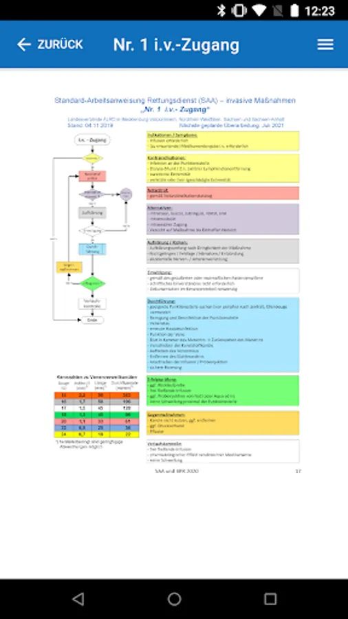 In the meantime, the first revised and Pathways Rescue Service (BPR) extended version of the Standardized Procedures (SAA) has been used as algorithms for the implementation of invasive procedures and medication by emergency paramedics in emergency life-threatening emergencies. These documents and materials were developed in a working group of Medical Lines Rescue Service from four state associations (Mecklenburg-Western Pomerania, North Rhine Westphalia, Saxony and Saxony-Anhalt) and coordinated in North Rhine-Westphalia with the Cities Day, the county council and the city and community federation. They are based on the catalogs that were agreed in Pyramid Process I in 2013 and 2014. Under the leadership of the Federal Association of Medical Directors Rescue Service various medical societies, rescue service professional associations and training institutions have come to the conclusion that these measures and drugs in the context of 3-year paramedic training can be learned so far that they can be mastered in the field. In addition, the treatment paths rescue service based on the emergency medical conditions, in the context of the pyramid process II in collaboration with medical societies, the BAND and the German professional association Rescue Service (DBRD) and drafted on 21.12.2016 in Cologne with representatives of the rescue service professional associations, fire departments and Training institutions were agreed. As part of the regular revisions and additions, these work instructions constantly incorporate new scientific findings and feedback from rescue services.