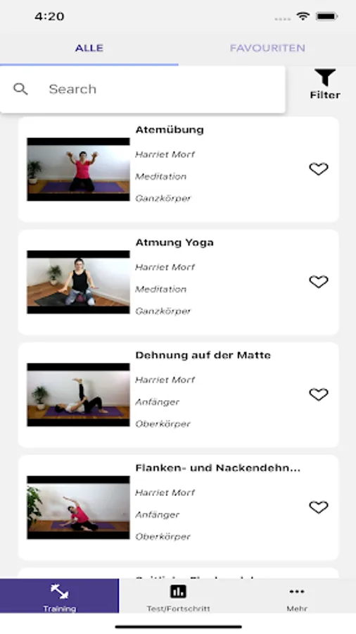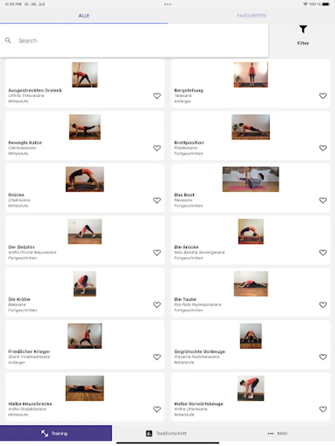 In addition, you can view nutrition tips, train different body parts, meditate, view instructions for different yoga styles and use the app in either German or English.