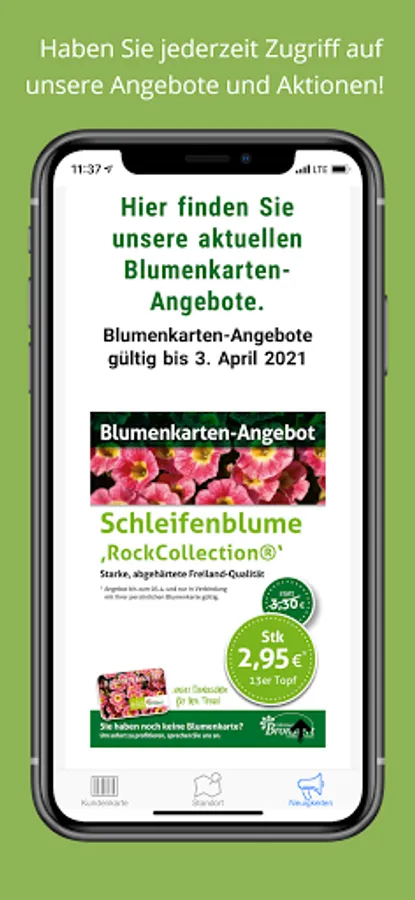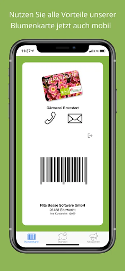 The Gärtnerei Bronstert app is your personal flower card (customer card) with which you can also use all the advantages on the go.