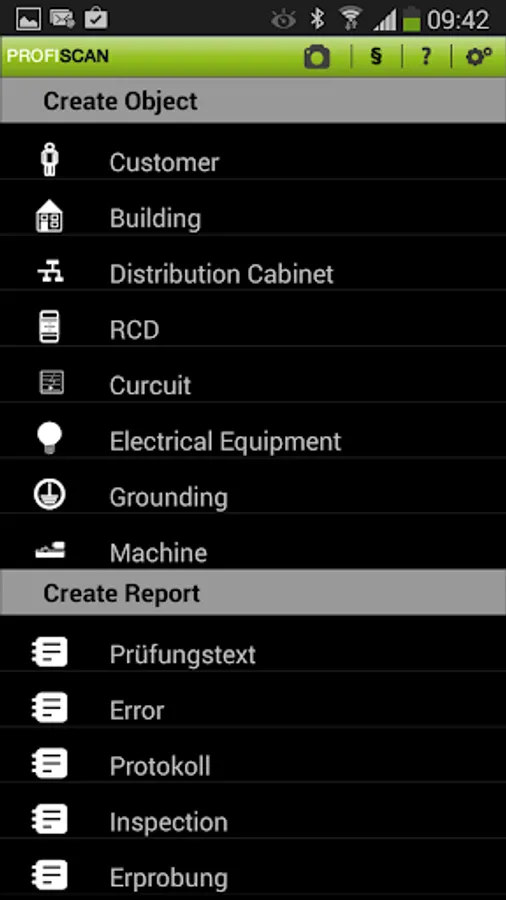ProfiScan app functions: