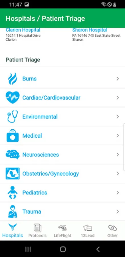 The AHN EMS Field Partner enables the provider to not only quickly reference referral information for medical and traumatic emergencies, but also provides the ability to link directly with Medical Command at the receiving hospital. The GPS function provides accurate coordinates to LifeFlight dispatch to speed the dispatch of helicopters when needed.