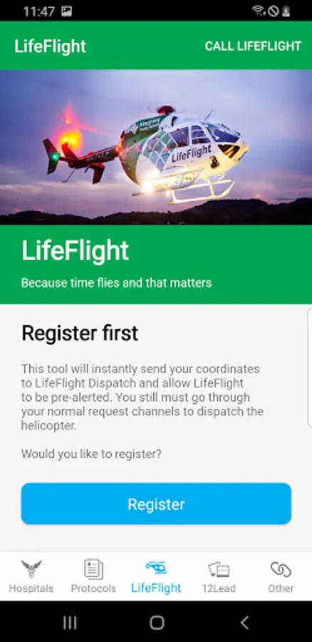 Although all Public Safety Providers may utilize the EMS App, registration is required for full activation and functionality. Registration is free and will take less than 5 minutes.
