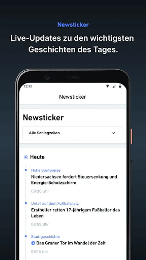 • Newsticker: Always up to date with all the headlines in the 24/7 news feed.