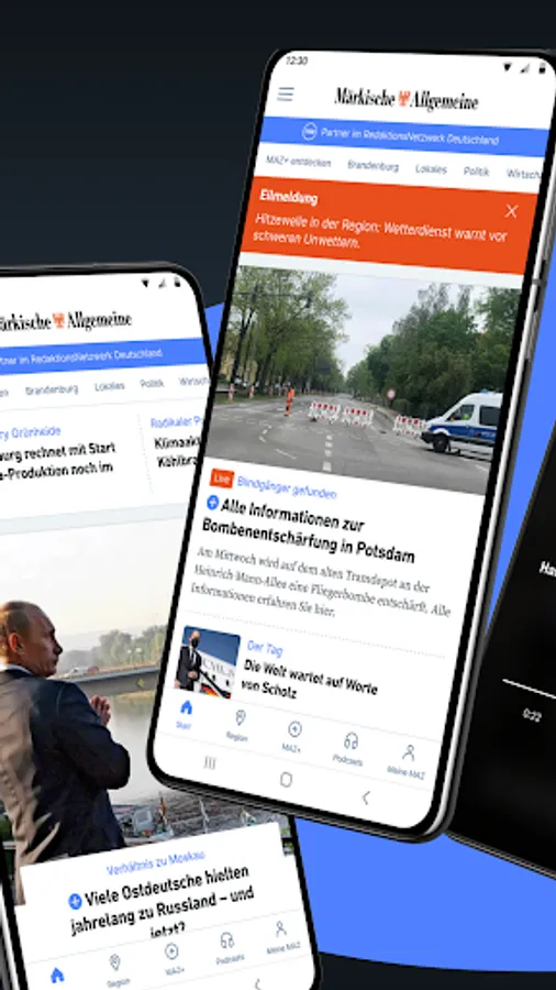 With the news app of the Märkische Allgemeine Zeitung you are close to what is happening in Brandenburg, Potsdam, Teltow, Dahme, Oberhavel and the world. Download the MAZ app now for free!